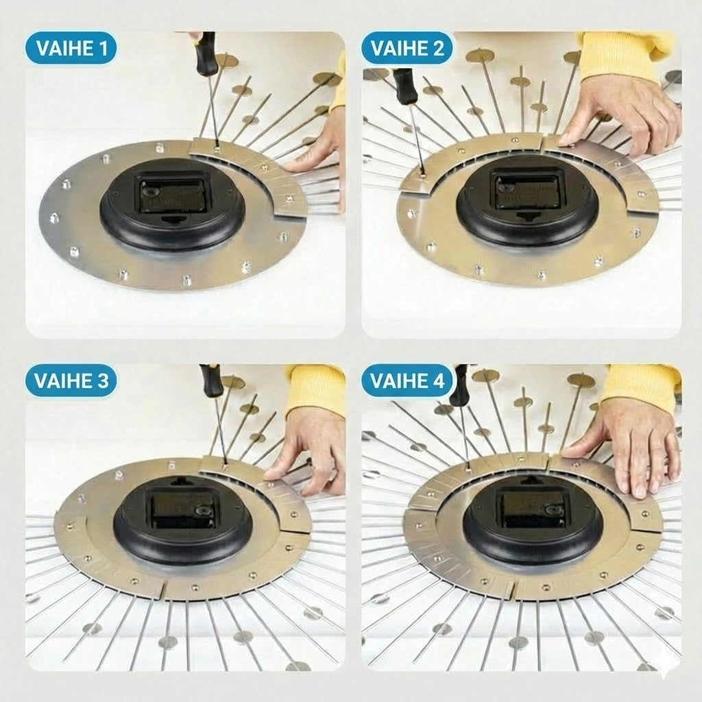 Valitse laatua, joka kestää vuosia vankan metallirakenteen ja korkealaatuisen suojakerroksen ansiosta. Tämä kello on suunniteltu vastustamaan ruostetta, värjäytymiä ja kulumista, mikä antaa suoran takuun pitkästä käyttöiästä sisustuksellesi. Investoit tuotteeseen, joka säilyttää loistonsa, mikä tehostaa sisustuksesi viimeistelyä, sillä sinun ei tarvitse jatkuvasti vaihtaa asusteitasi uusiin. Se on luotettava ja kestävä valinta jokaiselle, joka arvostaa korkealuokkaista muotoilua ja jämäköitä materiaaleja.